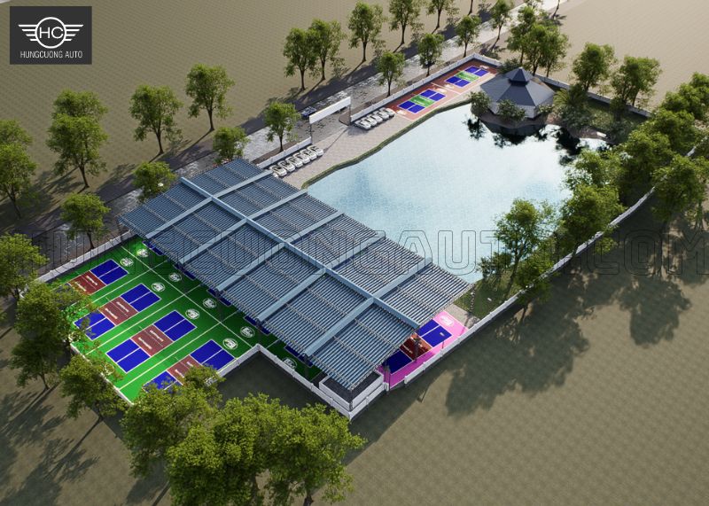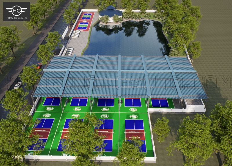 • Thẩm mỹ và chuyên nghiệp: Mái bạt xếp của HUNGCUONGAUTO có thiết kế hiện đại, đa dạng màu sắc, tạo vẻ ngoài nổi bật và chuyên nghiệp cho sân pickleball, góp phần thu hút người chơi.
